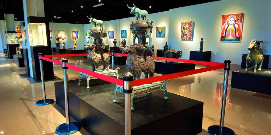 六十五歲愛花如癡的老闆黃春隆先生,除了種植養護整座園區的茶花之外,更喜好收藏古董文物,他從30多年前便陸續收藏來自大陸四川的三星堆出土文物,擁有的數量可說到了令人瞠目結舌的地步!在他心中一直有一個願望,希望將他的收藏展出與眾人分享,但因近年身體不適而作罷。太太楊敏華女士及在寰瀛法律事務所擔任資深合夥律師的兒子黃國銘,決定今年幫他完成夢想,重新整理以前的婚宴大餐廳,改造成寬敞的博物館,將他一生的收藏-神秘古文明三星堆文物,在12/5(六)正式向人們展出,吸引超過500位民眾入園參觀。農糧署前署長李蒼郎、前農委會主委彭作奎、新社區長林淑惠丶台中市議員黃仁丶前立委沈智慧丶台中市政府參事陳志聲丶台中科技大學謝俊宏校長丶退休將領賴文鎮將軍等各界長官貴賓冠蓋雲集,台灣區觀光協會聯合會理事長余紫菱及各縣市協會理事長都熱烈獻上祝福,開幕典禮圓滿成功!