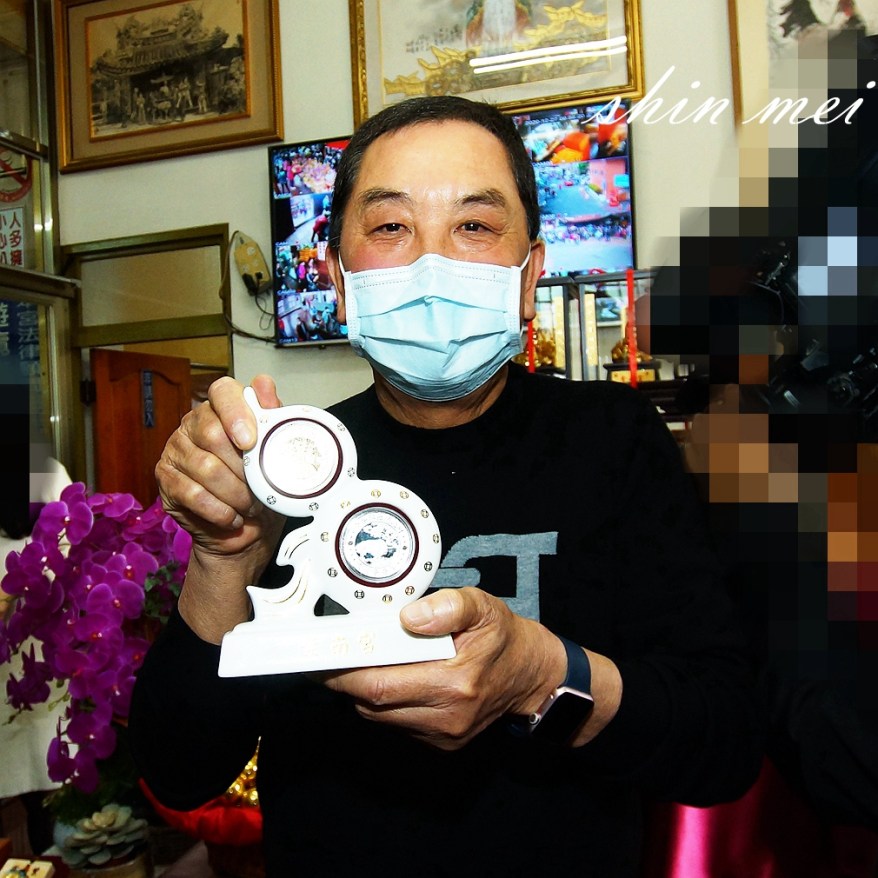 [新媒社 記者張銀澤/南投報導] 2021紫南宮《牛》年錢母一樣分為金幣、銀幣以單枚錦袋分裝,還有以盒裝金、銀套幣組,以雪白色葫蘆陶瓷作為設計,主委莊秋安表示,葫蘆代表吉祥,人們常掛在門口避邪、招寶,而成熟的葫蘆肚子裡葫蘆籽又多,亦象徵「子孫萬代,繁盛茂昌」。