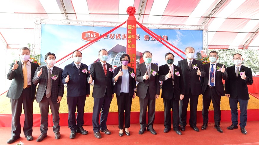 [新媒社 記者黃嘉雯/彰化報導] 大成投資 10 億元和日本昭和產業合作興建全台最大的雞蛋旗艦廠,昭成蛋品廠每小時將可處理 38 萬顆雞蛋,每一顆雞蛋都能清楚溯源,維持最佳鮮度,並且達到食品安全的最高標準。有鑑於彰化地區為全台最大雞蛋產區,同時配合政府推動雞蛋全面洗選政策,此投資案將帶動台灣雞蛋產業大幅升級。昭成蛋品廠動土典禮於 2021 年 1 月 22 日在彰化舉行,包括彰化縣長王惠美、農委會副主委黃金城、中央畜產會董事長林聰賢、日本台灣交流協會主任四ヶ所信之、大成董事暨僑泰興投資公司董事長趙天星、聯華實業投資控股公司副董事長苗豐盛、陶冶文化藝術基金會董事長陶傳正均蒞臨現場,共同參與動土典禮。王縣長說,台灣平均每人每年食用300顆蛋,是很重要的營養來源,從初級至最後的洗選,對彰化雞蛋產業更有加持,歡迎大成長城選在彰化投資,也請消費者多多選購「彰化優鮮」的農特產品,期許更多鄉親回來一起打拚。