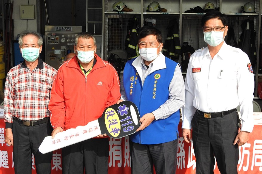 陳副縣長指出,南投縣消防局每年救護車出勤次數超過2萬2,000次,救護車損耗率極大,捐贈救護車的陳氏兄弟,世居南投市嘉和里,弟弟陳東卿遠赴南部打拚事業有成還擔任高雄義消大隊長,這次在林局長鼓勵下,陳東卿偕兄長陳耀唐合捐「嘉和號」救護車,將投入「南投91」救護行列。