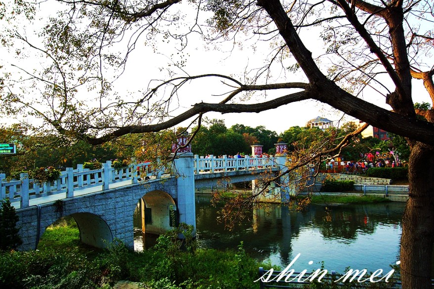 大里的康橋水岸公園內有座著名的「興大康橋」,其外觀仿英國康橋而建,日間天光雲彩伴隨橋廊倒映於水面有如明鏡,入夜橋廊兩側點燈後,水中的倒影彷彿架起了另一座橋梁隨著水波搖曳生姿,宛如詩人徐志摩《再別康橋》場景再現。其周邊規劃濕地、魚梯、廣場、自行車道等設施,相當適合全家大小一同出遊迎接春天。