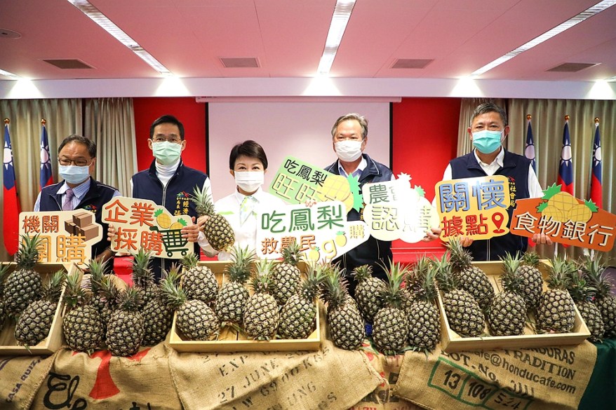 [新媒社 記者黃嘉雯/台中報導] 台灣鳳梨3月起外銷受阻,衝擊果農,台中市長盧秀燕為響應「吃鳳梨,挺農民」行動,今(9)早主持市政會議時宣布,市府將全力協助鳳梨行銷,認購15公噸鳳梨透過食物銀行提供予台中市家扶中心,照顧弱勢團體,另洽請各區農會協助促銷15公噸,共將銷售30公噸鳳梨。「多吃鳳梨,有助健康」,她呼籲市民多多食用鳳梨、挺農民!