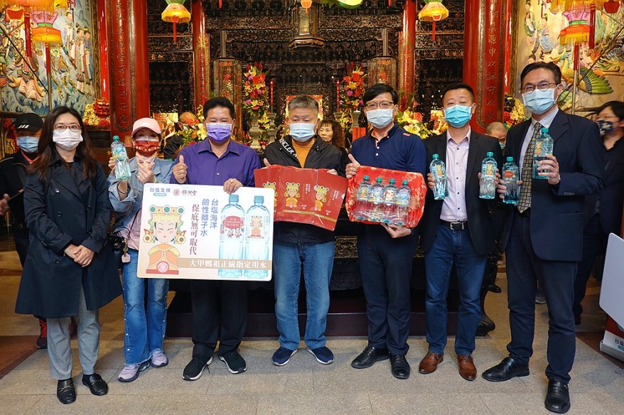 自2014年迄今,台鹽海洋鹼性離子水已連續8年獲選為每年大甲媽祖遶境「正統無可取代」的指定用水,其優質口感與品質,榮獲國內外多項大獎殊榮,堪稱全方位照顧全民健康的好水,「保庇無可取代」的形象,深獲信眾喜愛!臺鹽公司也善盡企業社會責任,不僅力挺歷史文化傳承,並因應疫後新生活,持續提供穩健、創新、可信賴的產品,守護國人健康!