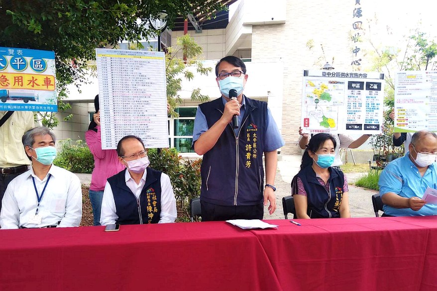 [新媒社 記者張銀澤/台中報導] 太平區公所於今(30)日(星期二)假新光水資源回收中心(祥順路一段5號)舉辦「新光水資源回收中心抗旱舉手牌暨獨居老人、行動不便者關懷及送水服務」,活動由許貴芳區長親自主持,宣導民眾多加利用臺中市政府水利局水資源回收中心回收水、公所廣場前設置地下水引水管提供民眾洗滌用水及太平區緊急送水車(專為社會局已列冊居住於本區獨居老人及行動不便無人照應者),此外,社會局陳坤皇副局長、陳麗華科長、水利局丁居正科長,宜佳里張麗真里長、多位鄰長及愛鄰守護隊、自來水公司大里所陳明宏股長到場關心。