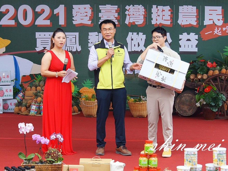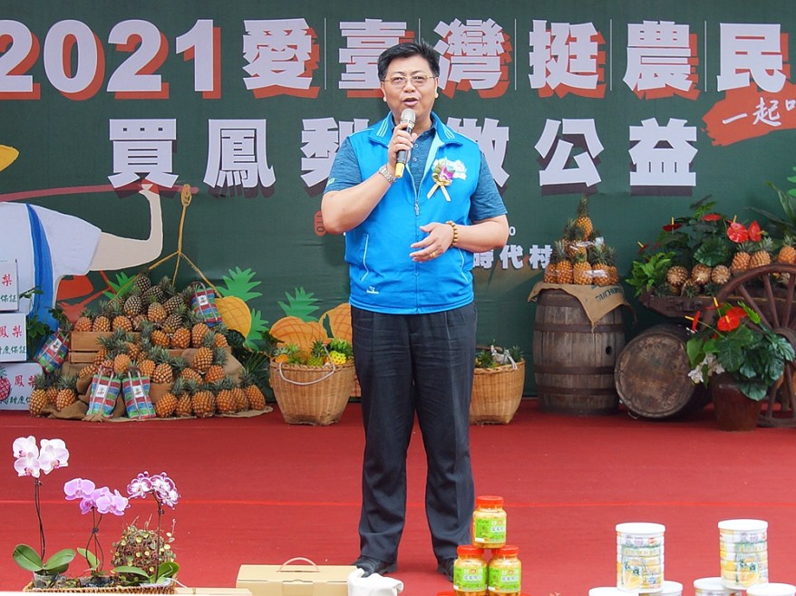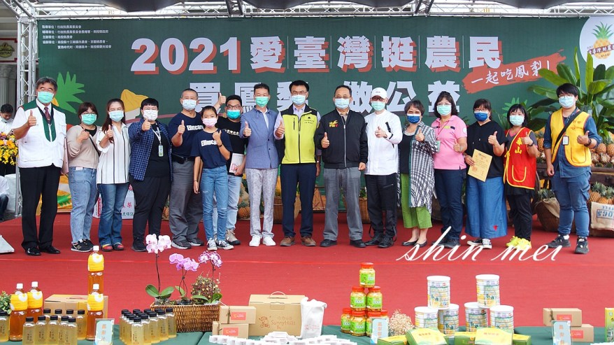 「2021愛台灣挺農民-一起吃鳳梨」大型鳳梨促銷活動熱鬧登場,吸引逾2千民眾到場共襄盛舉,農委會主委陳吉仲、縣府農業處長陳瑞慶、行政院中部辦公室執行長蔡培慧、農糧署副署長蘇茂祥、議員唐曉棻、簡賜勝、廖梓佑、同德高中校長童建文、草屯鎮長簡景賢、及13鄉鎮市農會總幹事都出席,同聲呼籲國人用行動買鳳梨˙挺農民。