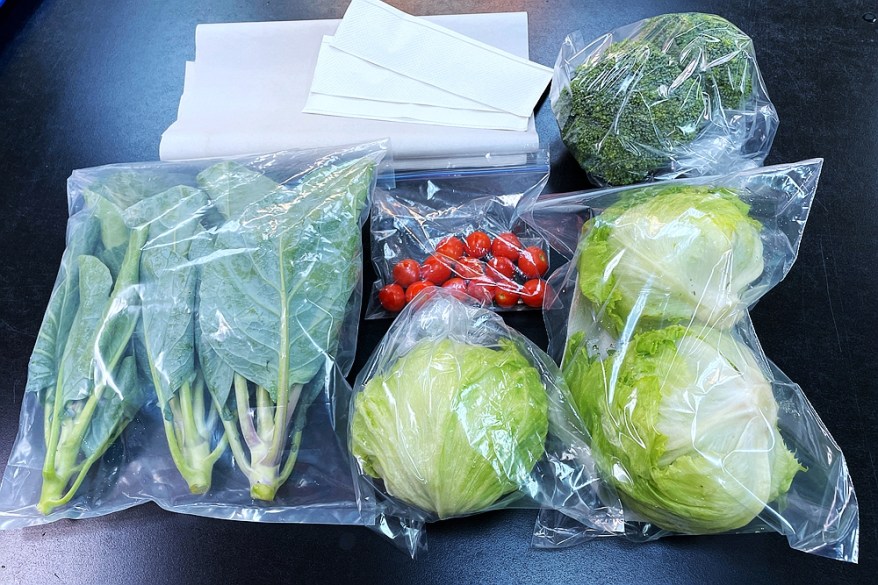 農試所指出,第二步是將分類好的蔬果,以具有保濕效果的方式進行保存,消費者可選擇居家方便取得的包裝材料,例如乾淨的PE袋、夾鏈袋,或利用乾淨的保鮮盒,進行分裝保存,包裝裡面可以放入一塊乾淨的棉布或餐巾紙,以乾淨水打溼,有加強保鮮的效果。該所建議以單次食用量包裝,使用方便,又能保鮮。