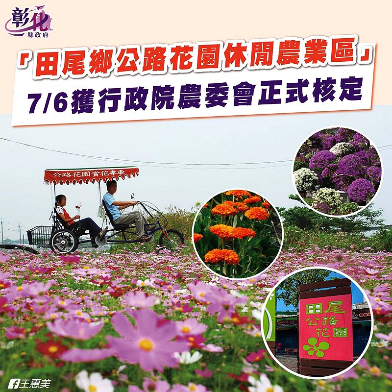 110年7月6日經行政院農業委員會公告劃定成為彰化縣15年來誕生的第三處休閒農業區,縣府非常感謝輔導單位田尾鄉公所林鄉長、縣議員劉淑芳及農會吳總幹事等地方人士的用心及努力,經歷多次協調集合在地協會及農友、業者,提送「彰化縣田尾鄉公路花園休閒農業區」規劃書面積計約有296.6公頃,涵蓋範圍包括打簾村、溪畔村、田尾村、柳鳳村及豐田村等區域,整體休區係以「Open Garden」為概念,透過此概念將主要區域加以串聯,以促進地方農業再升級。