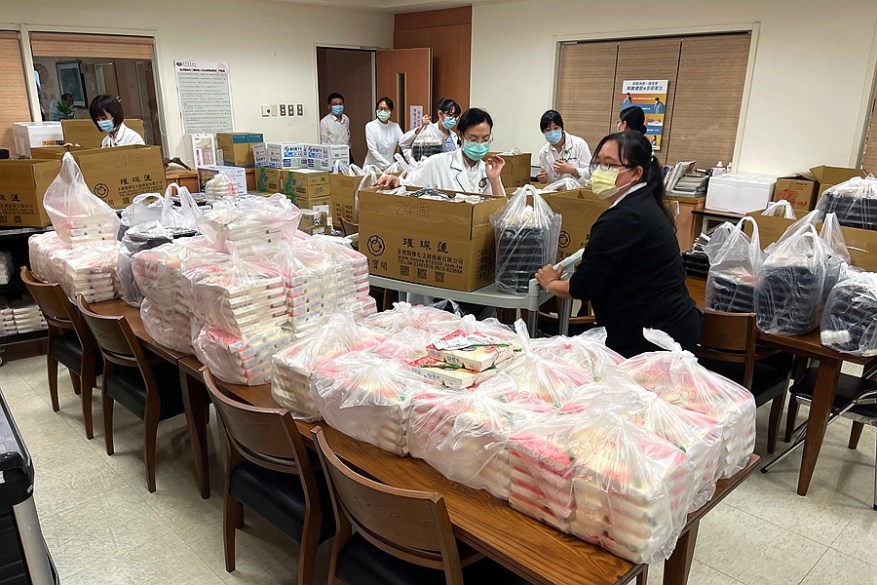 社服室同仁全員出動,依各單位人數分配餐盒。社工郭哲延表示,為了珍惜捐贈者的愛心,團隊上周就聯繫各單位,確認人數並預告提醒同仁不必帶餐。社服室還特別請託醫務助理詢問並統計醫師的用餐需求,讓醫師一起享用美味餐盒。
