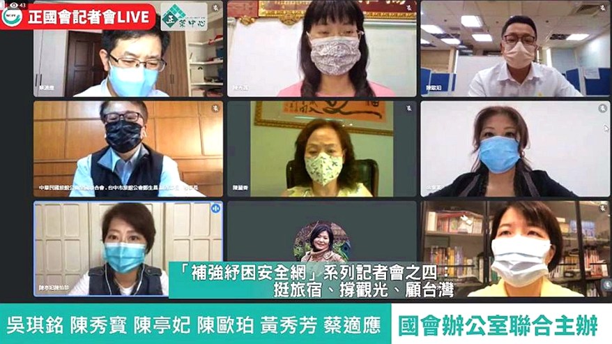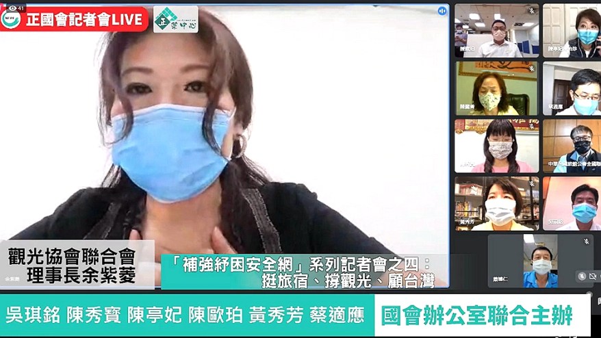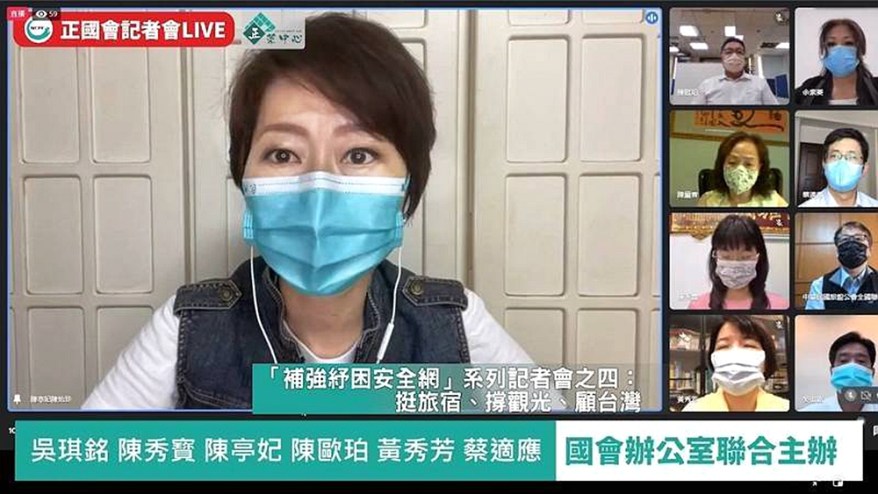 今日立委陳亭妃、吳琪銘、陳秀寳、蔡適應、陳歐珀、黃秀芳聯合舉辦 「補強紓困安全網:挺旅宿、撐觀光、顧台灣」 線上記者會,邀請旅行公會全聯會理事長蕭博仁、旅館商業同業公會副理事長鄭生昌、觀光協會聯合會理事長余紫菱、基隆市觀光協會理事長陳麗香參與。