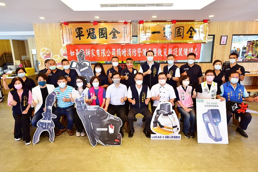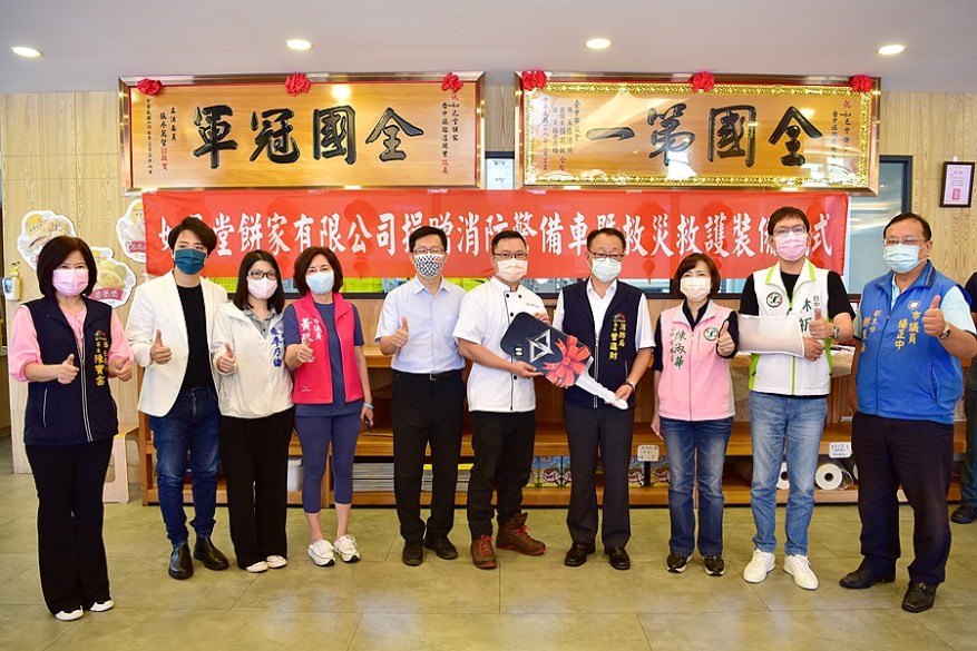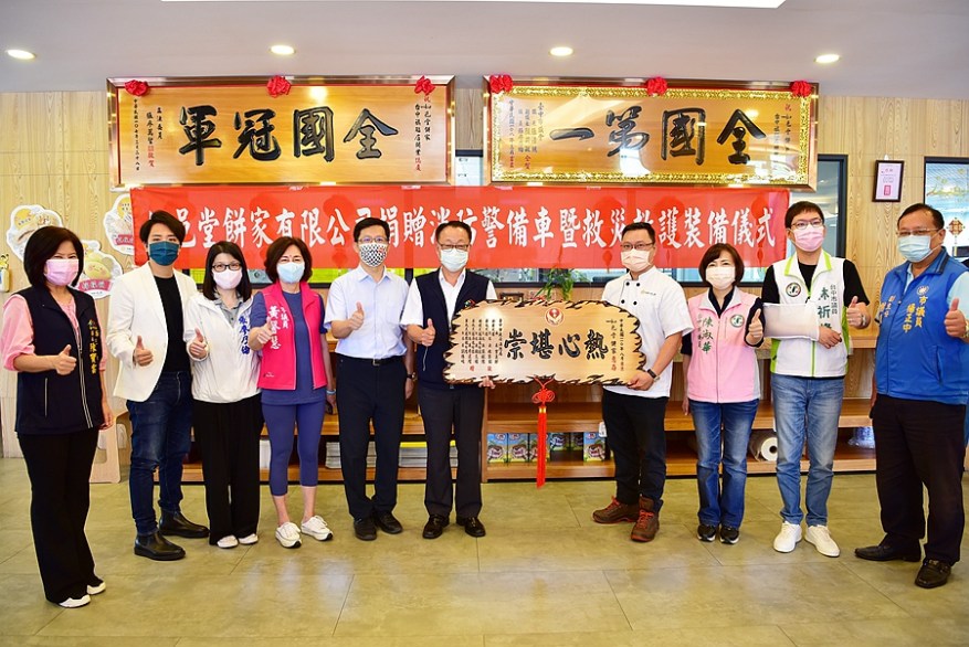 [新媒社 記者張銀澤/台中報導] 台中市著名伴手禮太陽餅比賽常勝軍「如邑堂」創始人林震東先生,有感於疫情期間消防人員救災、救護辛勞,捐贈市府消防局600萬元救災、救護裝備器材,今(28)日舉行捐贈儀式,消防局長曾進財代表受贈並回贈感謝狀,感謝林震東先生慷慨解囊,提昇消防單位戰力,保障消防人員執行勤務安全。