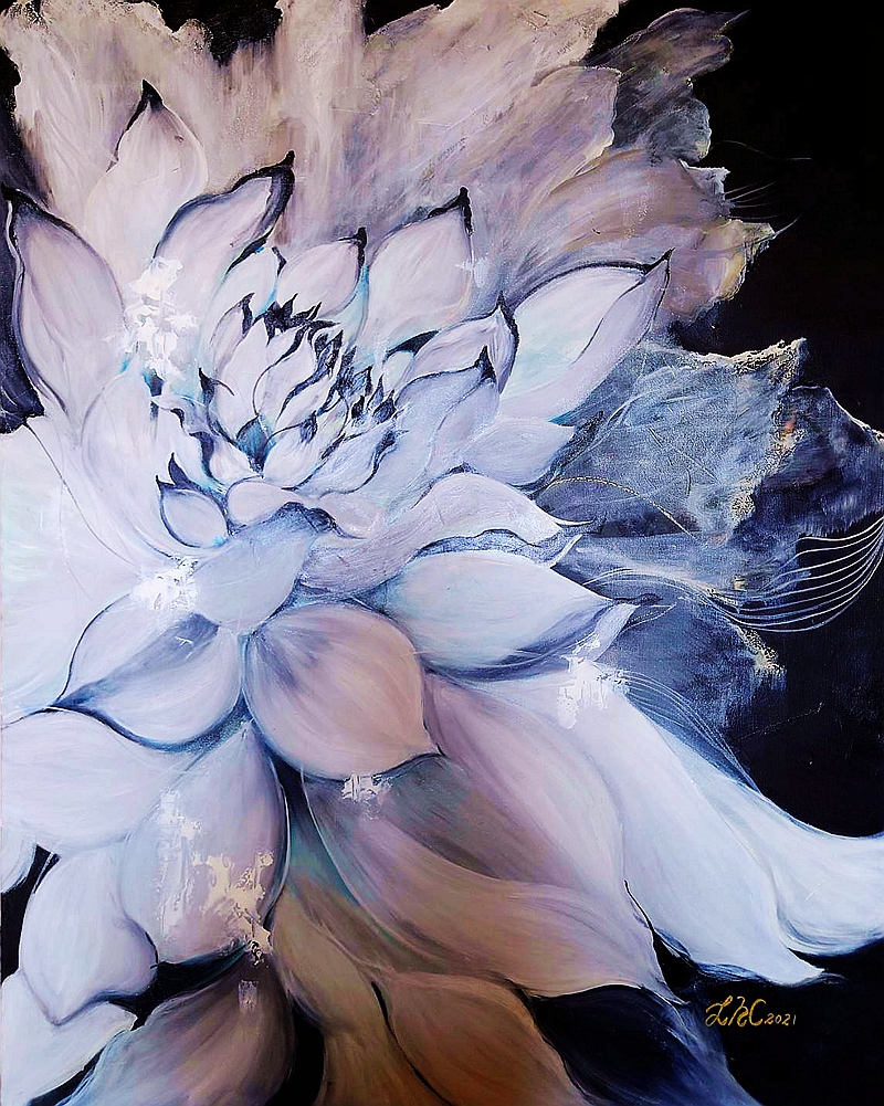 李玉婷老師(Emma)「甜美氣質」女畫家,多才多藝,通過檢定的甜點烘焙師,在台中自家開設的藥局擔任經理工作,和李蕙瑾是感情特別好的姊妹淘,因興趣及品味相近,利用工作之餘習畫,有好友督促及觀摩,畫得特別認真,而且進步神速,去年8月和李蕙瑾在台中市思默好時藝文空間舉辦以花卉為題材的《八月花聚》三女子花系列油畫特展中初試啼聲一鳴驚人。