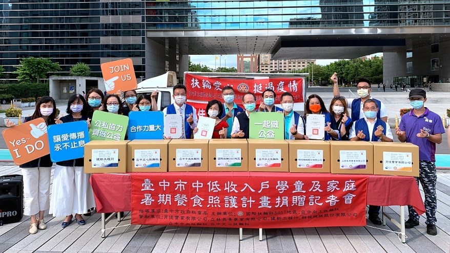 [新媒社 記者張銀澤/台中報導] 台中市政府社會局與台中向上扶輪社聯手推動「中低收入戶學童與家庭暑期餐食照護計畫」,於7、8月結合社友及善心人士,配送愛心食物箱給太平區、大里區計500戶中低收入戶家庭,安頓600位弱勢學生生活,將持續給予弱勢家庭更多關懷與溫暖,共度過疫情時刻。