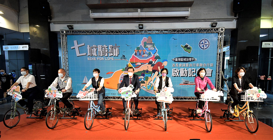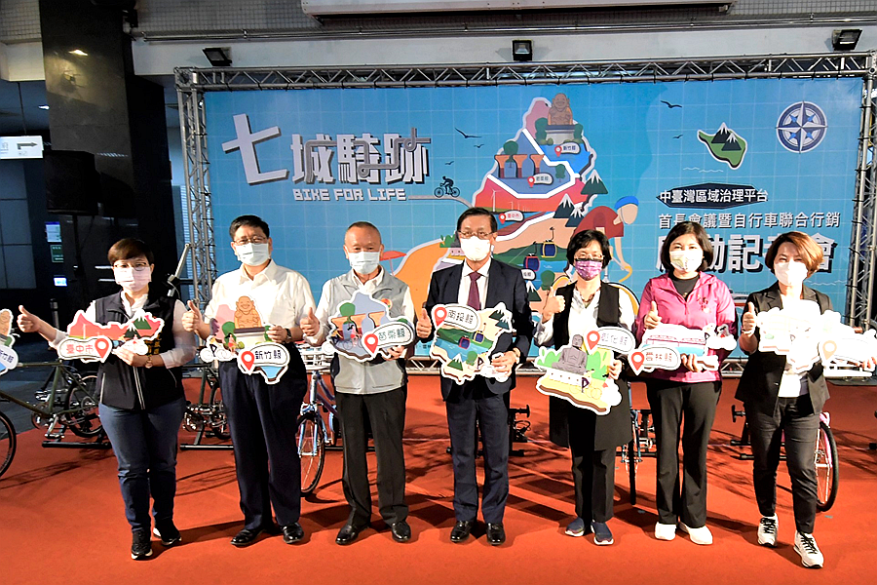 縣長林明溱15日邀請臺中市長盧秀燕、彰化縣長王惠美、苗栗縣長徐耀昌、新竹縣長楊文科、雲林縣長張麗善、嘉義副市長陳淑慧,齊聚縣府,發表區域合作成果,同時為強化區域防疫能量,7位首長也共同簽署「聯合防疫共同守護中臺灣合作聲明」,透過跨縣市攜手合作,建立更綿密、更完善的防護網,守護民眾的健康安全,隨後進行自行車行銷活動啟動儀式。
