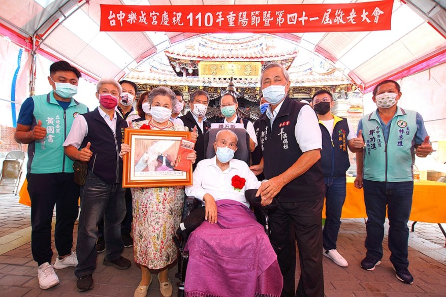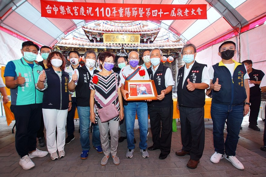 [新媒社 記者張銀澤/台中報導] 財團法人台中樂成宮慶祝【重陽節暨舉辦第41屆敬老大會】於110年10月7日樂成宮廣場舉行重陽節敬老大會。台中樂成宮秉持「老吾老以及人之老」感念長者對社會貢獻,以媽祖慈悲、關懷及崇敬的態度來舉辦重陽敬老大會已屆滿41年。旱溪八里長者真幸福。今年發放敬老年金人數高達4333人,禮金發送6,130,400元。轄區八里內就有7位是百歲人瑞。