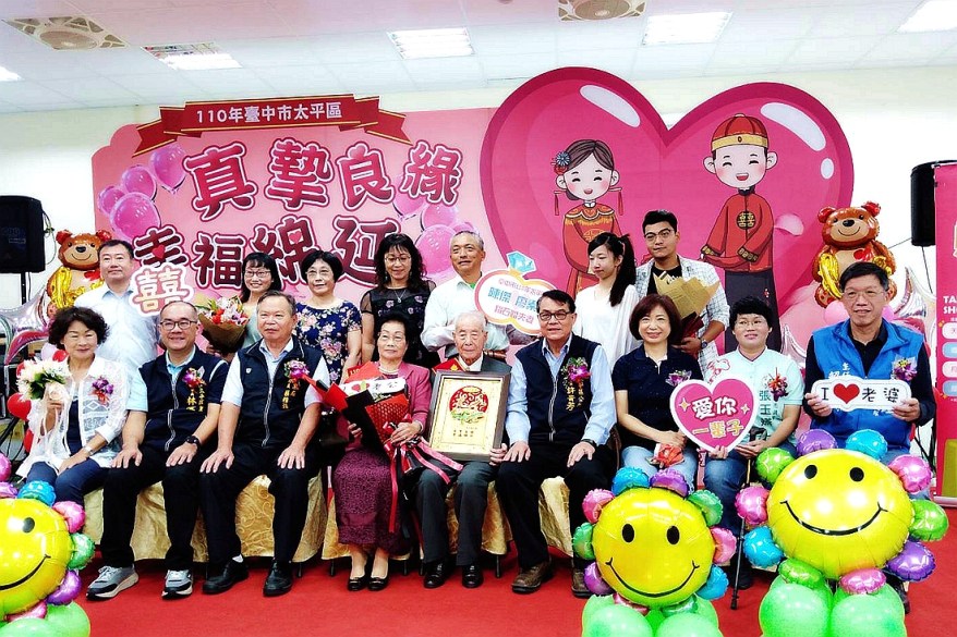 結褵多年的長輩夫妻們在家人的陪伴下,接受表揚及各界的祝福。臺中市農業局蔡精強局長代表盧秀燕市長蒞臨,與太平區長許貴芳親自頒發賀匾給金鑽婚夫婦們並共同拍照留念。