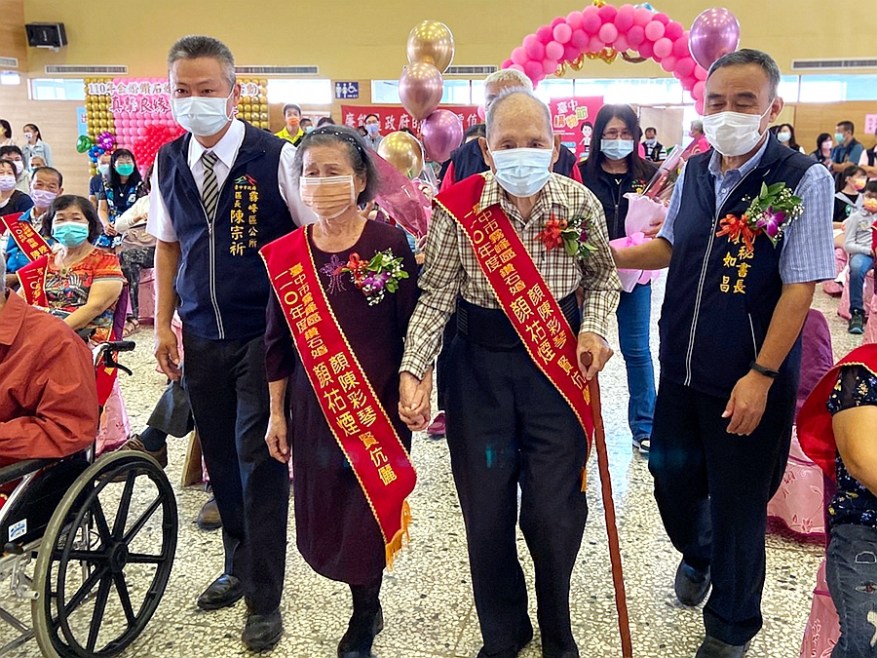 陳區長致詞時表示,夫妻要攜手度過五十年以上相當不容易,需要互相的包容及體諒,是晚輩維繫感情最佳的典範。來自四德里的顏祜煙(87)和顏陳彩琴(87)、五福里的吳錦源(86)和鄭阿琴(83)這兩對結婚已達63年,為全場婚齡最長的夫妻,實屬難能可貴。