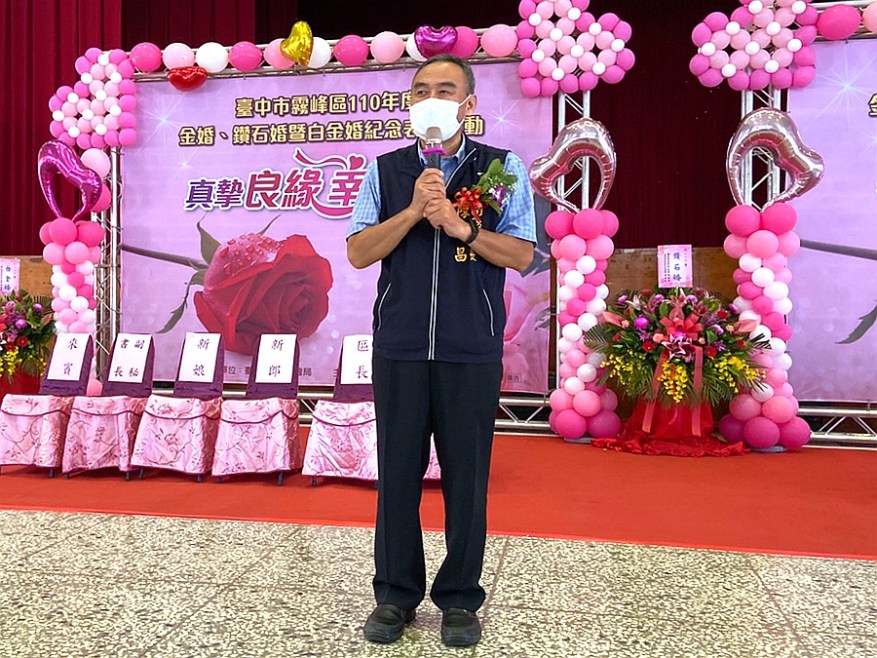 [新媒社 記者張銀澤/台中報導] 台中市霧峰區公所於110年11月6日上午8時30分舉辦「真摯良緣 幸福綿延,臺中市霧峰區110年金婚暨鑽石婚紀念表揚活動」。今年度邀請69對牽手走過五十及六十以上的金鑽婚長輩們接受表揚,分別為鑽石婚26對及金婚43對,一路以來相互扶持、鶼鰈情深,齊心為家庭打拼,藉由一年一度的表揚活動讓各界嘉賓一同見證堅貞的愛情。
