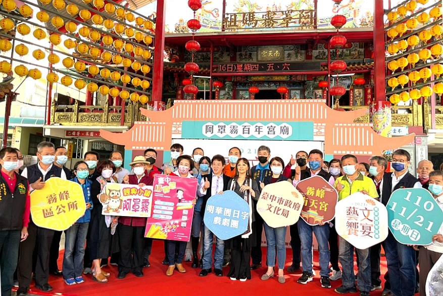 [新媒社 記者張銀澤/台中報導] 為讓臺中市市民知道百年宮廟霧峰南天宮供奉三百多年「船頭媽-阿罩霧媽祖、順風耳神像、千里眼神像、玄天上帝神像」等4件市定公告指定古物,希望藉「2021阿罩霧百年宮廟-藝文饗宴」,透過表演藝術的形式,規劃具傳承、創新、活力、多元的藝文氛圍,邀請傳統或現代類型或跨界演出的優質表演團隊演出,帶給民眾多元的藝文饗宴,豐富民眾的藝文生活,並同時分享地方文化。