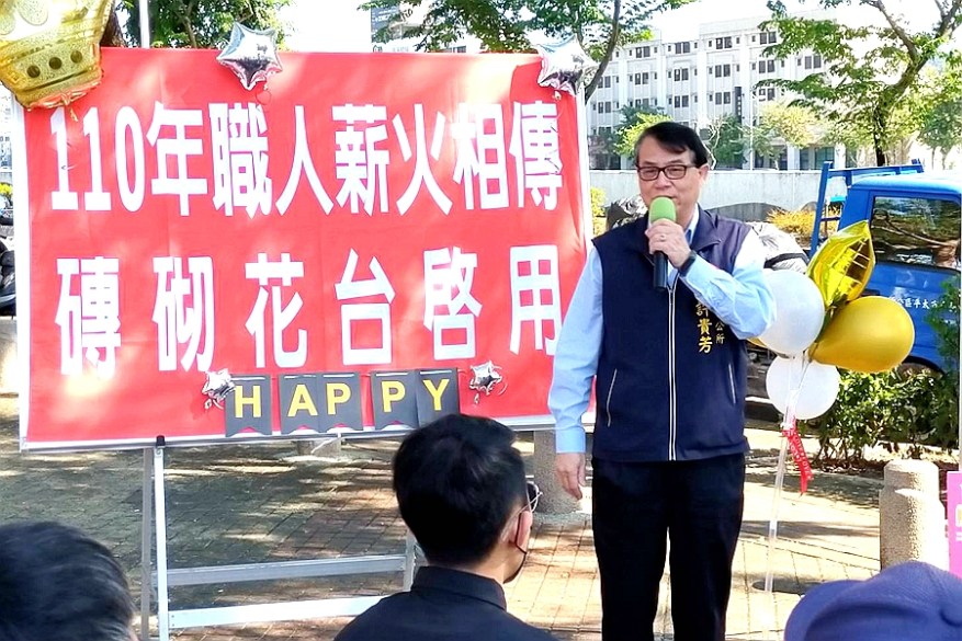 [新媒社 記者黃嘉雯/台中報導] 太平職人薪火相傳磚砌花台啟用 許貴芳區長宣傳台中購物節國內疫情緩和、防疫鬆綁,今(19)日辦理職人薪火相傳砌磚花台啟用,太平區公所許貴芳區長、羅群穆副局長、賴義鍠議員、新坪里紀進豐里長、宜昌里林進發里長、豐年里劉盈欣里長、新吉里黃天財里長、宜欣里楊登圳里長、宜佳里張麗真里長、坪林里賴啟誠里長、光明里廖奕華代表出席等多位貴賓出席啟用活動。