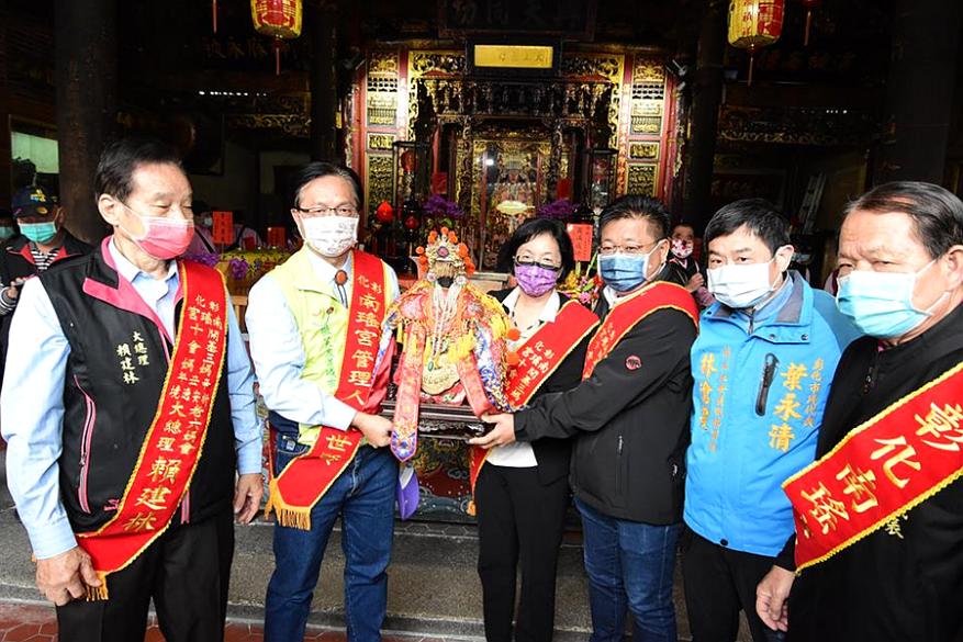 [新媒社 記者張銀澤/彰化報導] 110年彰化南瑤宮天上聖母繞境十會媽角頭祈安繞境今27日一早在南瑤宮起駕,彰化縣長王惠美(繞境榮譽主委)與彰化市長林世賢(南瑤宮管理人暨繞境主委)、繞境大總理賴金鐘、十媽會各總理等人參與,由開基三媽天上聖母會同十會媽聯合出巡為鄉親祈求平安,南瑤宮於100年起至103年舉辦開基三媽天上聖母繞境十會媽角頭活動,十會媽聯合出巡,當時歷時四年遶境巡視450多個角頭、513間友宮廟、53處公司行號學校,時隔10年,再次出巡,發揮彰化媽神威,為民祈福,祈求國泰民安、風調雨順。