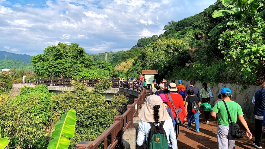 健行活動於步道入口處宣導完成實名制、量體溫、噴酒精、配戴口罩等防疫措施,領取毛巾、水、園遊券及摸彩券,順著楓香林榭步道、貓頭鷹步道、空橋串連步道、古農莊漫步至頂坪公園,沿途可見車籠埔百年老樟樹、領角鴞光影圖案的拍照熱點、舊有軍事碉堡設施、生態護育貓頭鷹巢箱、回舊時光廊道等,賞心悅目之餘,對公部門與社區的積極努力給予肯定。