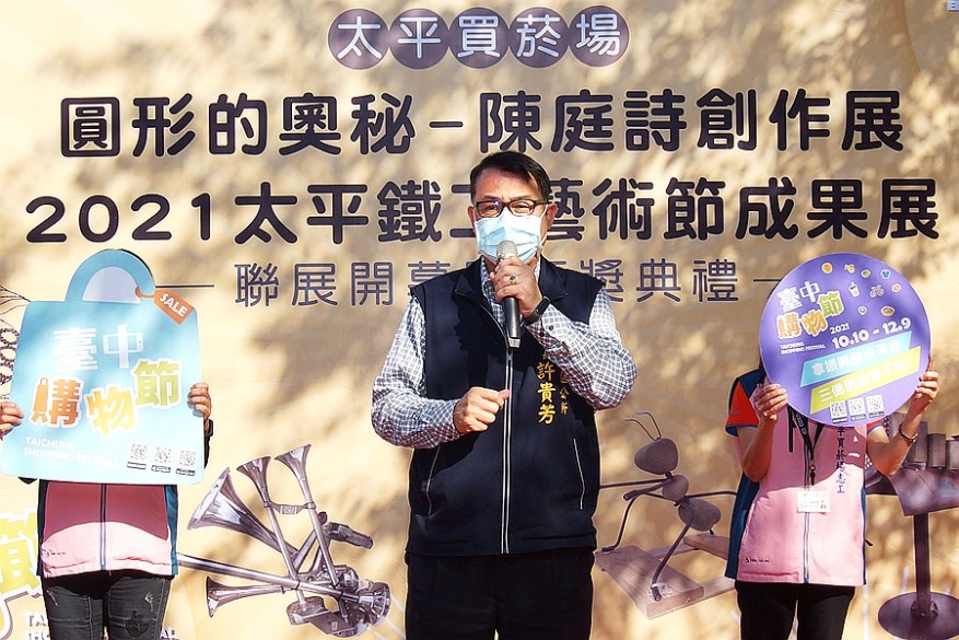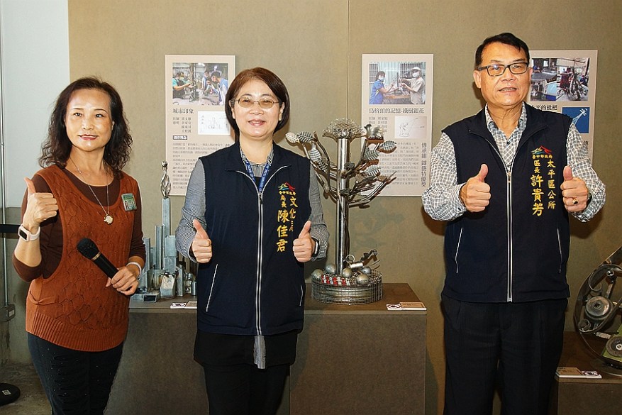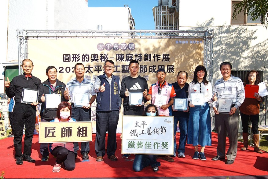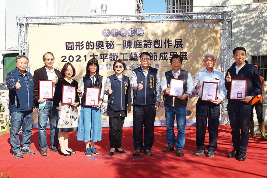 [新媒社 記者張銀澤/台中報導] 臺中市太平區公所於110年12月4日星期六上午9時30分在太平買菸場辦理「圓形的奧秘-陳庭詩創作展」及「2021太平鐵工藝術節成果展」聯展開幕暨頒獎典禮。