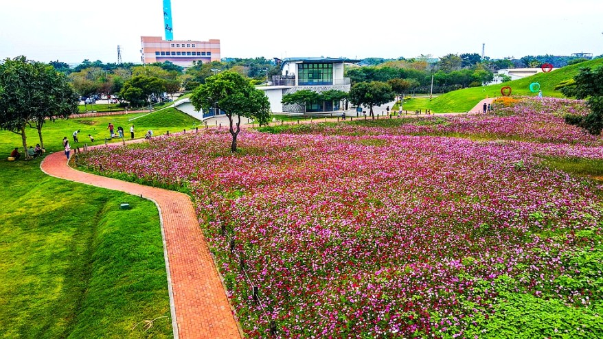 [新媒社 記者黃嘉雯/台中報導] 迎接年節氣氛,台中市政府建設局用草花點綴台中、展現區域特色亮點,於后里環保公園種植1.2公頃粉色系大花波斯菊與金黃向日葵,首次採用雙拼花卉方式規劃出超吸睛的「紛金」色旋風,冬季限定的絕美花海絢爛盛開,建設局長陳大田力邀喜愛親近自然風景的朋友來悠遊花海。