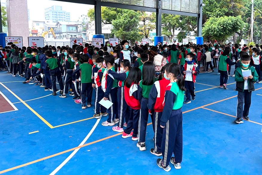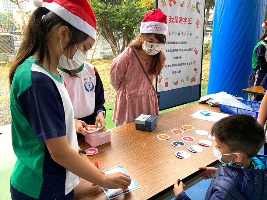 曾娉妍校長說此次配合聖誕節規劃英語闖關活動,安排在學校半戶外操場,由英語教師依據各年級英語教學內容,設計五個關卡,依序為:「快跑!薑餅人:認識英語字母及任務單字」、「我會大聲說:回答字母與基本英語句型」、「聖誕老人的禮物:排列字母順序與重組英語句型」、「我是造字王:找出大小寫字母與利用字母拼出單字」、「我是大歌星:自公告曲目任選一首,清楚唱完四句歌詞」。學童每通過一關,可獲得過關印章一枚,集滿四個過關章即可獲得闖關禮物一份。