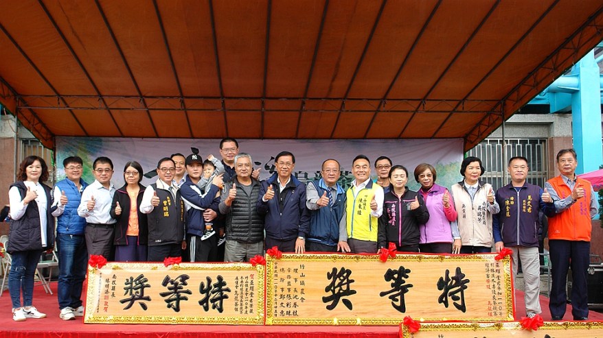 [新媒社 記者張銀澤/南投報導] 縣長林明溱25日前往席竹山鎮農會農特產展售中心出席110年「杉林溪冬茶競賽頒獎典禮暨竹山鎮農會農特產品展售促銷活動」,頒匾表揚烏龍茶組特等獎得主巫耀堂及新品種組特等獎得主吳國銘,林縣長邀請國人來竹山吃番薯配竹筍,喝好茶,樂享冬遊南投好時光。