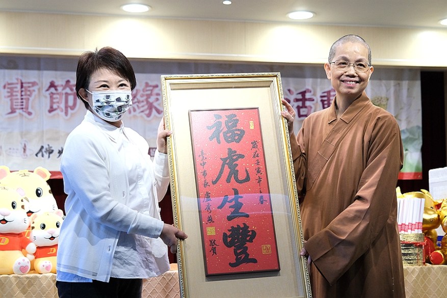 [新媒社 記者黃嘉雯/台中報導] 農曆十二月初八為佛陀成道日,又稱「法寶節」,佛光山惠中寺今(3)日特別準備臘八粥及春聯致贈給洽公民眾及市府員工。市長盧秀燕今日出席法寶節結緣活動時表示,華人傳統中,過年前都會吃臘八粥祈求新的一年平安,過去一年因新冠肺炎疫情,民眾很辛苦,期望今年的臘八粥能帶來平安、健康、順利,也期許國人不管遇到什麼逆境都能勇敢堅強。