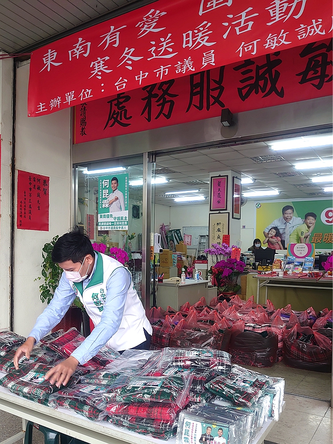 台中市議員何敏誠「東南有愛 圍巾傳情」寒冬送暖活動 !
