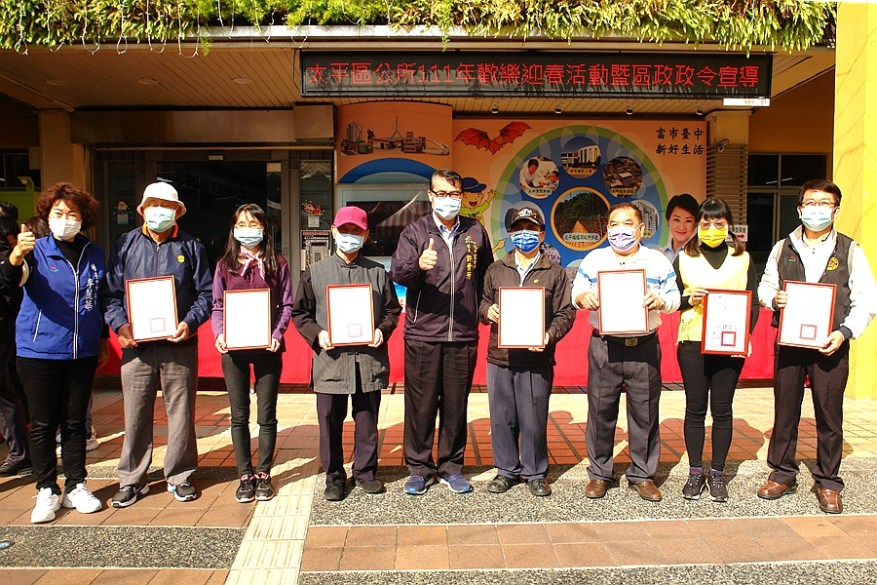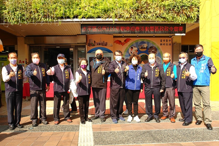 宜佳里張麗眞里長、宜欣里楊登圳里長、長億里林泳鰡里長、建興里胡長志里長、黃竹里林元成里長、新光里游癸龍里長、新吉里黃天財里長、新城里胡錩宏里長、新高里江姿樺里長、聖和里王龍文里長、興隆里賴玉敏里長、豐年里劉盈欣里長、民政顧問曾清和、黃東守、姚中偉、曾進輝、賴冬烈、市政顧問劉月櫻、陳新民、許木雲、洪煥坤、黃秋勇、太平區體育會理事長廖繼恭、太平區調解會委員廖美琳、慈明高中圖書館主任張志宏共同感受年節歡樂氣氛。