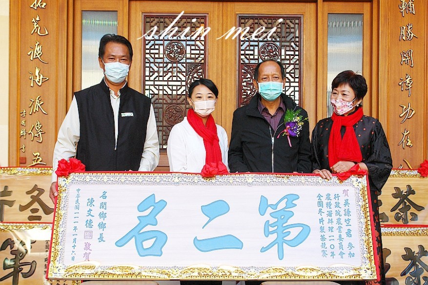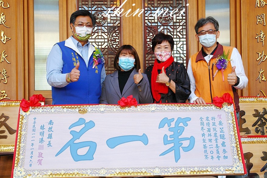[新媒社 記者張銀澤/南投報導] 110年冬季暨2021全國冬片茶比賽茶頒獎典禮16日在名間鄉李氏家園登場,由南投縣茶商公會理事長李麗芳主持,立委許淑華、縣府農業處長陳瑞慶都出席,李理事長邀與會貴賓一同進行特等茶開罐儀式,並交由無我茶會茶師沖泡供嘉賓品茗。會中,陳處長也代表縣長林明溱頒發凍頂烏龍茶組、凍頂金萱茶組、凍頂四季春茶組、凍頂翠玉茶組等4組特等茶王及冬片茶組冬片茶王等賀匾給5位得獎者:名間鄉長陳文德也頒發行政院農委會農糧署辦理的110年全國冬片製茶競賽匾額給前3名得主,儀式熱鬧隆重。