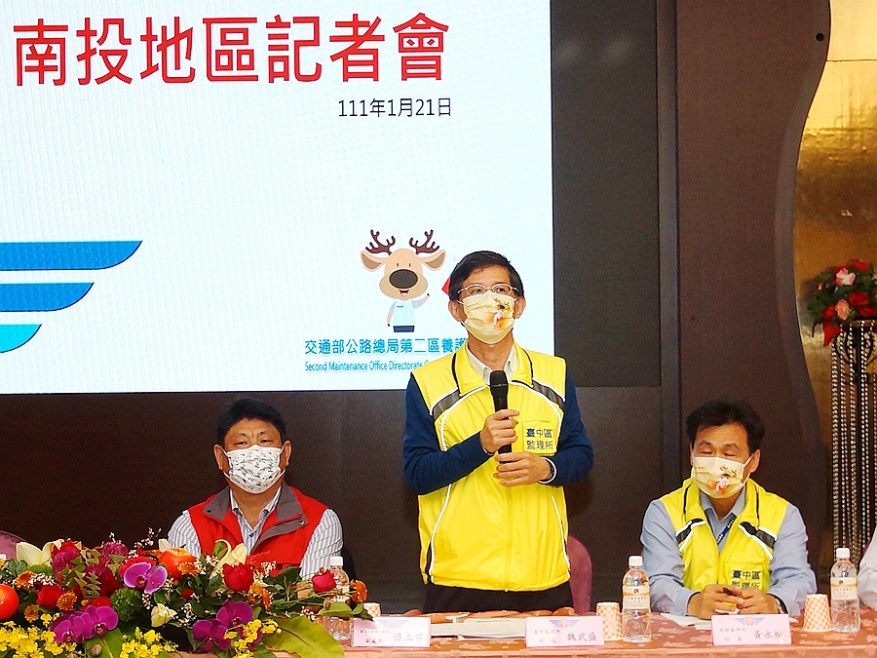 111年南投地區春節疏運記者會由公路總局第二區養護工程處副處長傅立祥、台中區監理所所長魏武盛聯手主持,南投監理站站長黃永松及第二區養護工程處南投工務段、埔里工務段、信義工務段、員林工務段段長也都列席報告。