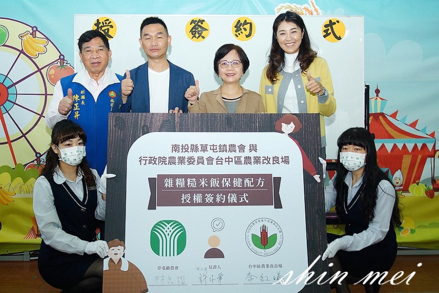 台農77號越光米系列授權及雜糧襙米飯保健配方技轉,分別由農委會農業試驗所所長林學詩及台中區農業改良場場長李紅曦代表與草屯鎮農會理事長林昆熠簽約,立委許淑華、議員唐曉棻、簡峻庭、蔡銘軒、行政院中部辦公室執行長蔡培慧、草屯鎮民代表會主席洪坤助及多位代表都到場觀禮。
