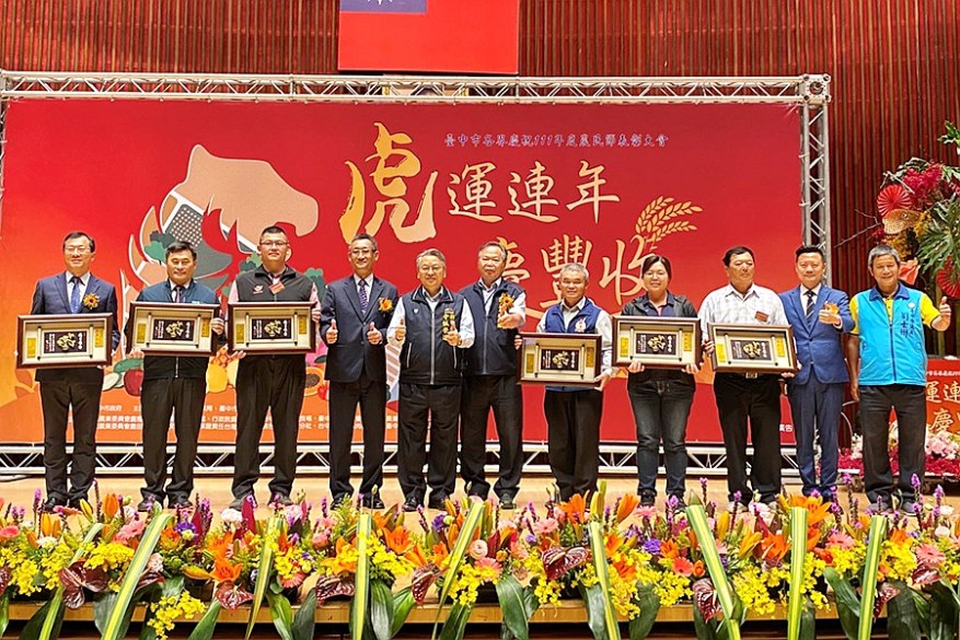 [新媒社 記者黃嘉雯/台中報導] 111年台中市政府農業局輔導台中市農會舉辦「『虎運連年~慶豐收』台中市各界慶祝111年度農民節表彰大會」。市長盧秀燕今(22)日出席並參與農業成果啟動儀式,她表示,感謝各界優秀農民在農業領域中所付出的偉大貢獻,期待農民與市府及各級農會繼續合作,為台中農業努力。
