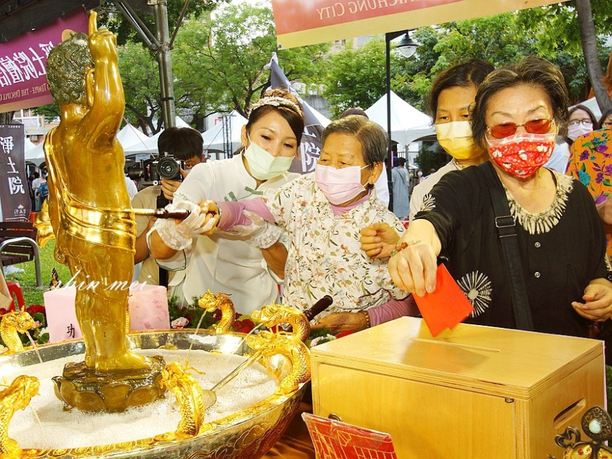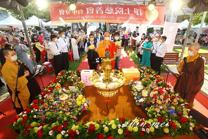 [新媒社 記者張銀澤/台中報導] 2022淨土院 台中分院一年一度的【報母恩。祈福浴佛】法會。111年4月23日美術園道盛大舉行,而這次檀信會與念佛會也一同完成這項年度勝會。疫情急速升溫之下,各幹部與義工菩薩們皆盡力做好防疫措施,讓大家可以安心的參與活動,各攤位也受到大家的歡迎。