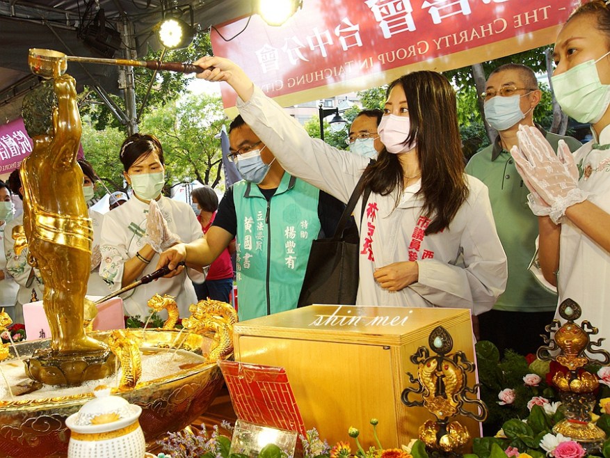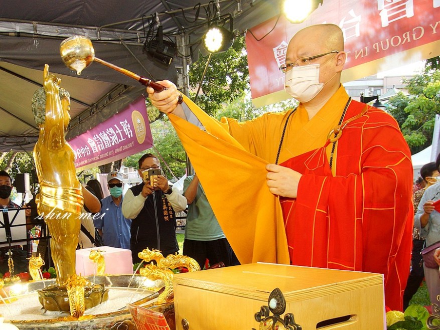 台中會長林芳如表示這次浴佛活動由嘉陵古箏樂團、海埔國小國樂、新庄國小弦樂、嘉陵弦樂團暖場,天女團獻供,最後由住持和尚帶領大家誦經、開示、各貴賓致詞、園遊會結緣素食餐點,完成這次的浴佛結緣法會。