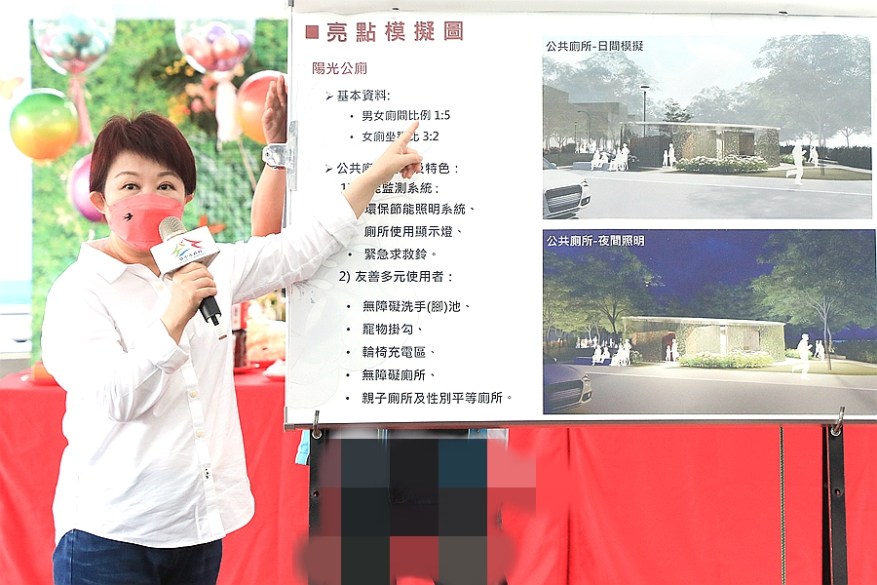 有關興建陽光公廁,盧市長提到,過去廁所男女比是1:1,她擔任立委時提升至1:3,但女廁還是大排長龍,因此她當時要求政府修改建築技術規則調整成1:4 ,她就任市長後特別要求台中市新建公共廁所男女比提升至1:5 ;另外,一般公共廁所多為蹲式,對於身障及小朋友不方便,因此台中市也調整坐蹲比,給市民更友善便利的公廁空間。