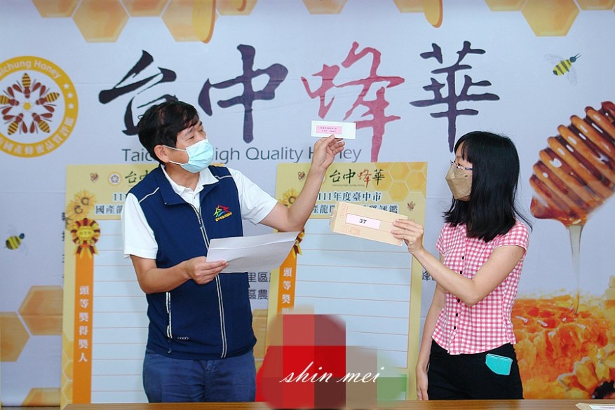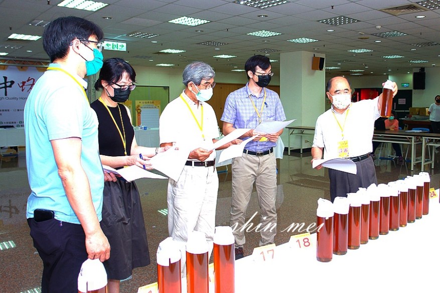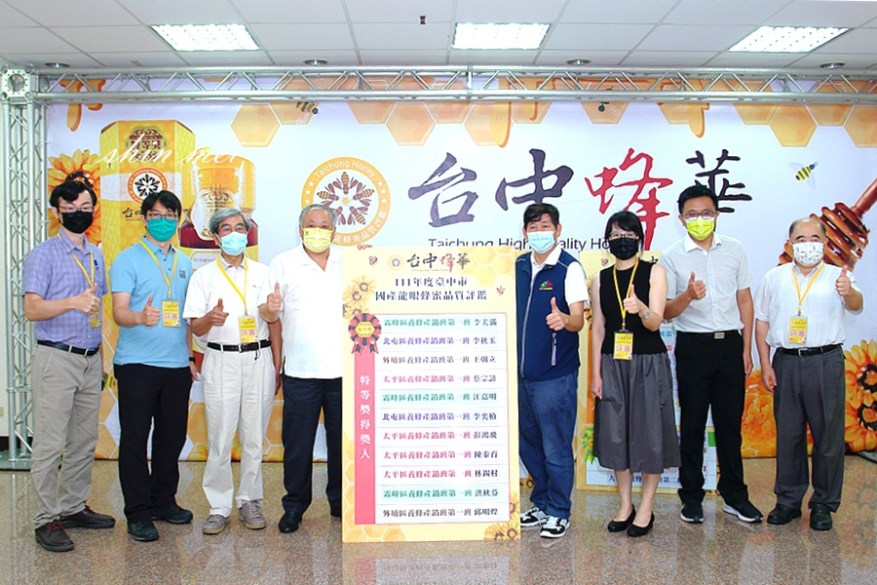 [新媒社 記者張銀澤/台中報導] 台中市政府農業局輔導太平區農會(15)日舉辦「111年度台中市國產龍眼蜂蜜品質評鑑」,鼓勵台中市養蜂產銷班蜂農踴躍參加,透過各項安全品質儀器檢驗及嚴謹的感官品評程序,評選出最優良的蜂蜜產品。農業局表示,這次共有11位獲特等獎、21位獲頭等獎、4位獲優良獎,共36位蜂農獲獎,並以「台中蜂華」做為品牌推廣行銷,期能增加產品附加價值,獲得消費者青睞,增加農民收益。