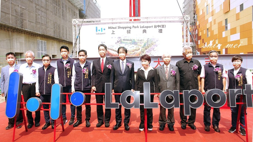[新媒社 記者張銀澤/台中報導] 台中新地標再+1!日商三井不動產投資台中東區LaLaport購物中心,(25)日舉行上梁典禮,此為三井集團在台中投資百億的第2件大型投資案,預計將創造2,500個就業機會。「翻轉舊城區!」市長盧秀燕出席指出,LaLaport定位為親子型購物中心,感謝疫情期間三井集團對台中市仍深具信心,在東區加碼投資百億興建LaLaport購物中心,今日上梁代表硬體工程即將完工,盼年底開幕營運,屆時舊城區、東區、甚至中區等地都會有重大翻轉。