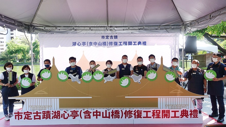 [新媒社 記者黃嘉雯/台中報導] 台中市定古蹟「湖心亭」建於1908年,已有114年歷史,是台中市最具城市意象代表性的古蹟建築,更是市徽的主要視覺元素。由於湖心亭木結構毀損,台中市政府為妥善保存文化資產及維護遊憩安全性,已爭取中央補助464萬元並自編464萬元預算,共計928萬元,進行湖心亭及中山橋修繕工程,今(15)日舉行開工典禮,預計明年8月底完工。