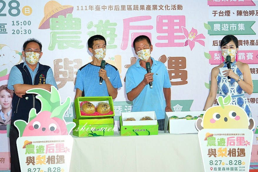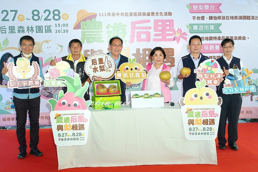 后里區公所 頼區長也說今年蔬果産業文化活動『農遊后里與梨相遇』將於8月27、28日在后里森林園區舉行,活動中有高接梨趣味競賽、后里公所食農學堂1.0、好梨三重送及産銷班設立農特産品展售灘,活動也特别邀請民歌歌手于台煙及明日之星陳怡婷熱情演出,還有大朋友小朋友都喜歡的親子互動表演及在地優質表演團體接力演出。
