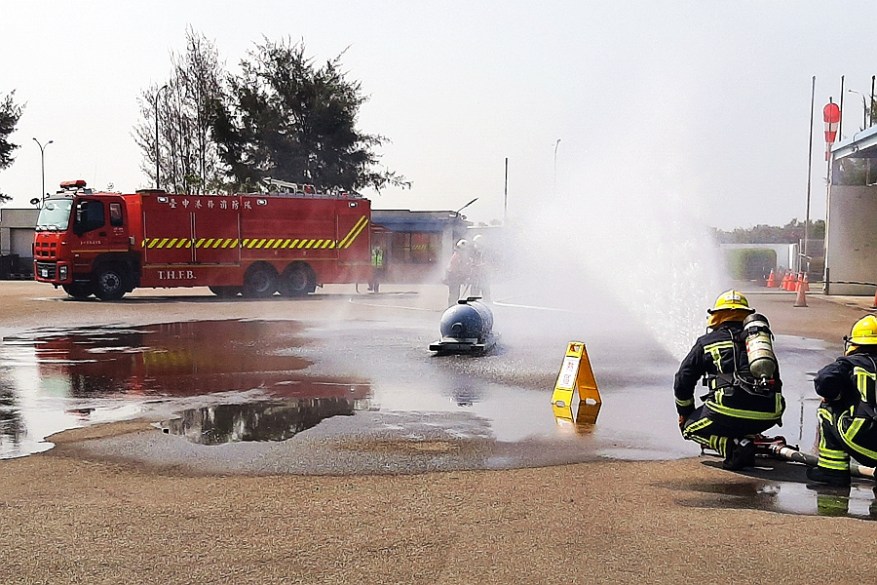 此次演練模擬司機在插取SiH4 Y鋼缷貨時,因發生地震造成Y鋼晃動掉落地上,造成瓶閥接頭處洩漏起火。矽甲烷為一無色、會與空氣反應、有窒息性影響。與空氣接觸會自燃,燃燒時會釋放出未結晶的SiO2濃煙。演練項目包括廠商啟動初期應變,實施通報、初期管制;傷者緊急救護演練;實施搶救水線布置、消防隊進廠支援及矽甲烷搶救演練;鄰廠戒備、啟動臺中港園區關鍵人員(168人)應變警示通知(一呼百應系統)。