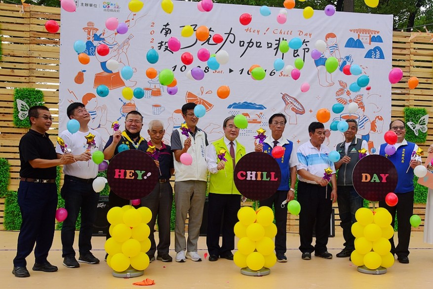 [新媒社 記者張銀澤/南投報導] 2022南投巧克力咖啡節「Hey!Chill Day」8日在中興新村兒童公園盛大開幕,縣長林明溱與活動大使埔里之光-高曼容一同宣佈9天活動正式展開,邀請全國民眾到南投找茶、喝咖啡、吃巧克力。
