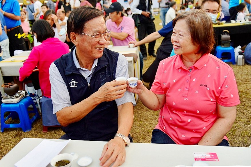 [新媒社 記者張銀澤/南投報導] 2022南投世界茶業博覽會-千人茶會9日下午在中興新村 大操場盛大開幕,縣長林明溱、立委許淑華、農糧署長胡忠ㄧ、縣議員洪浩原等人出席,逾2千人坐在青青草地上圍繞茶席品茶香聽樂音,氛圍浪漫溫馨。
