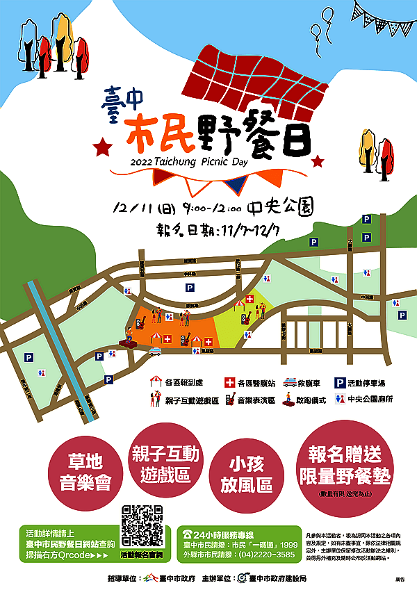 陳局長指出,「台中市民野餐日」首屆選擇在中央公園舉辦,將自11月7日起受理報名,活動詳情請上台中市政府官網或活動報名官網查詢。