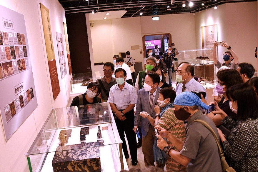 禮成後,亦由黃老師現場導覽,深入淺出的解讀每件漆器的技法、紋飾,讓與會貴賓不僅飽覽難得一見的臺灣總督府漆器風采,更看懂漆皿上的蒔繪紋飾,饒富深意。本檔特展在本館文物大樓2樓鯤島風華特展室展出,時間自111年11月17日至112年5月14日,每日上午9時至下午5時(週一及民俗節日休館),歡迎大家蒞臨參觀。