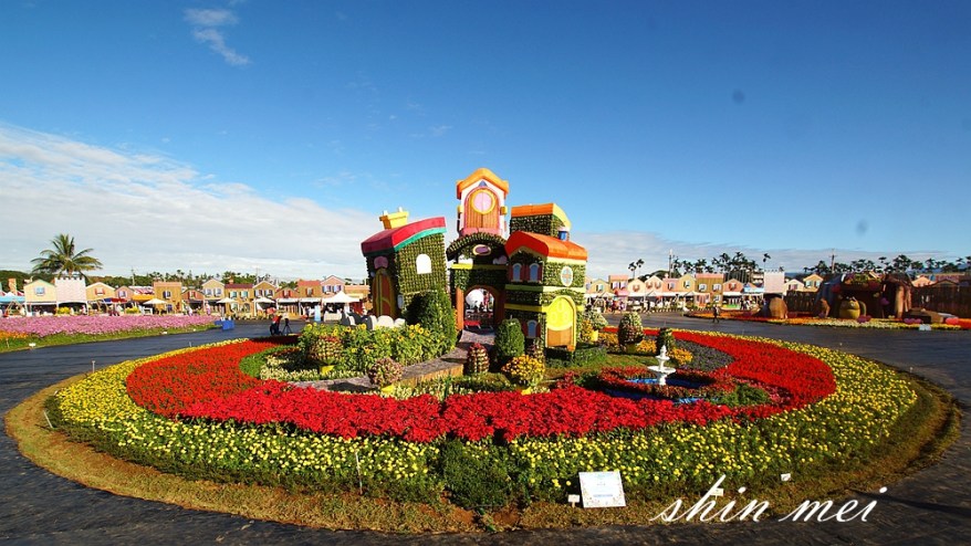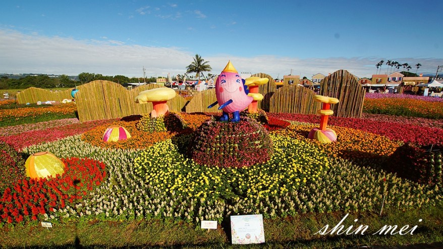 觀旅局提到,展區以「心花開」大門迎賓,數棟充滿綠意的可愛建築為入口意象,主花毯「希望莊園」總高10米,莊園中數幢建築各別住著小精靈們,每日上午10時至下午3時整點展演主花毯秀時,小精靈們將會現身與民眾打招呼,百合花叢中誕生的「花仙子」靈巧可愛,帶著不同個性的「小精靈」在幸福花園裡尋找幸福解方。