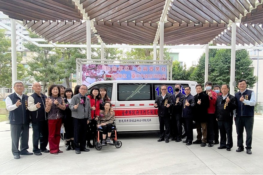 [新媒社 記者黃嘉雯/台中報導] 台中市德興實業社林昭正老先生感念消防隊將車禍受傷的兒子及時送醫,肯定救護人員的努力,多年來以公司名義持續捐贈救護車;林老先生逝世後,其公司接續其志,今年再捐贈一部救護車及救護器材給消防局第一救災救護大隊潭子分隊,今(14)日捐贈儀式上,由消防局長曾進財代表受贈,感謝其熱心公益、提升大台中消防能量。